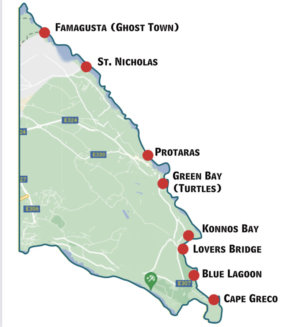 Trasa: Wybrzeże Protaras, Famagusta, Zatoka Konnos, Cape Greco (Błękitna Laguna)