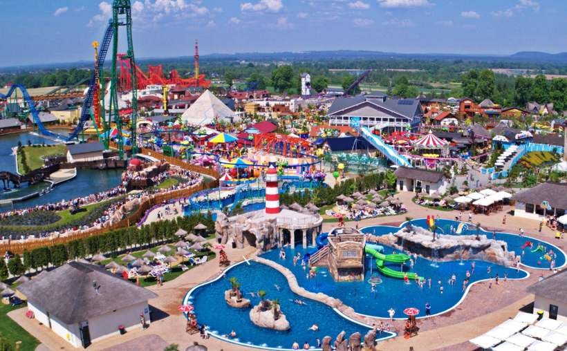 60 atrakcji w 3 strefach, 29 ogromnych urządzeń, 20 gier i zabaw interaktywnych, Water Park, kino 7D